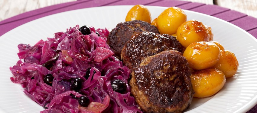 - En Dinamarca se acostumbra servir con papas caramelizadas, Para ello se coloca a calentar en una sartén un poco de mantequilla con azúcar hasta que se funda y se haga un caramelo líquido en el cual se revolverán papas pequeñas previamente cocidas.